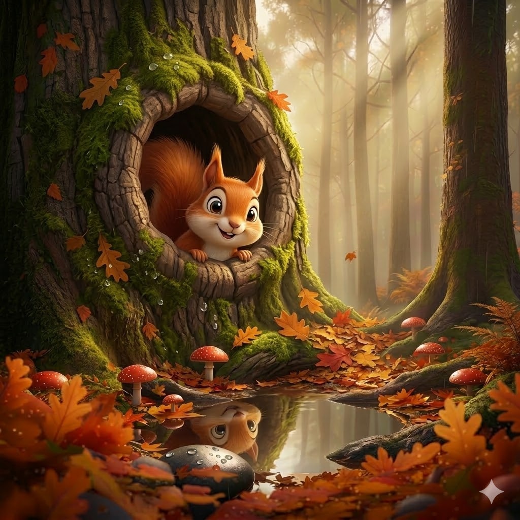 Потом за большой камень. Там, между корнями старого дерева, была маленькая ямка. — Вот! — гордо сказал Скок. — Наш тайник. Чип заглянул внутрь. — Пустой. — Пока пустой, — сказал Скок. — Но мы будем складывать сюда самые важные вещи. — Какие? — спросил Чип. Скок подумал. Потом положил в ямку блестящий жёлудь. — Первый клад. Чип поискал вокруг и нашёл гладкий камешек. — Второй клад. Они закрыли тайник листом. — Никто не должен знать, — сказал Скок. Но через минуту рядом прыгнула сорока. — Кар! Что это вы делаете? Скок быстро сел на лист. — Ничего. — Кар! Очень подозрительно, — сказала сорока и улетела. Скок и Чип переглянулись. — Может, она всё видела? — прошептал Скок. — Может быть, — сказал Чип. Они открыли тайник. Жёлудь лежал.