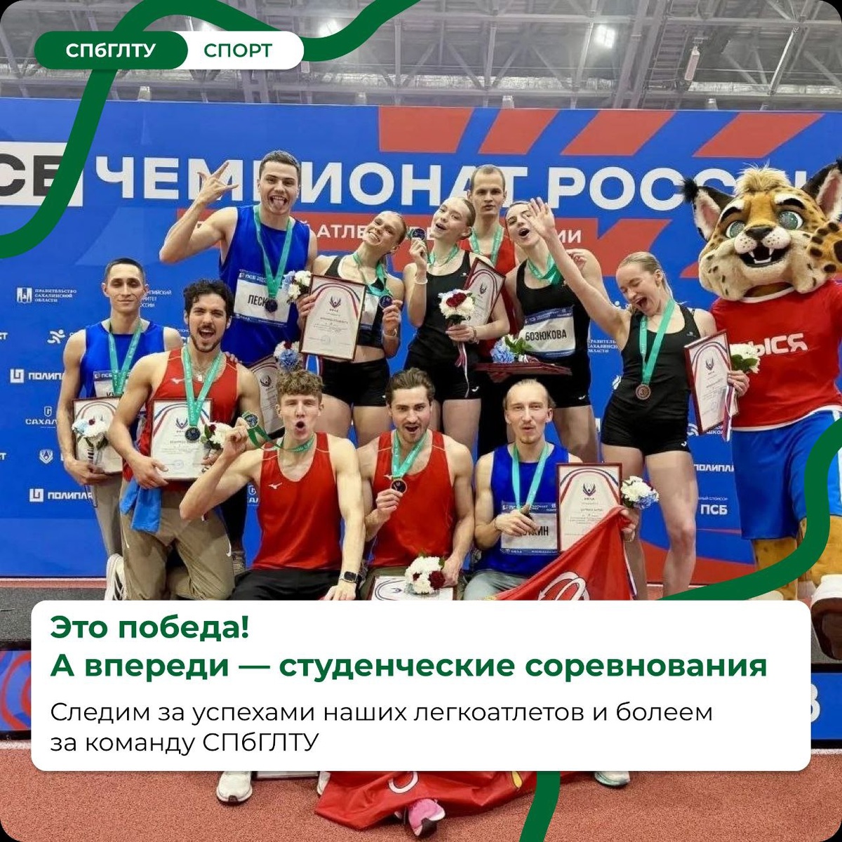 ! Завершился Чемпионат России по лёгкой атлетике в помещении, который проходил в Южно-Сахалинске. В заключительный день соревнований, 3 марта, состоялись финальные старты эстафеты 4×400 метров, где блестяще выступили наши спортсмены. Результаты: 🥇 Высоцкий Максим, выпускник Института технологических машин и транспорта леса, в составе команды «Санкт-Петербург-2» завоевал золото! 🥉 Деткин Антон, студент Института технологических машин и транспорта леса, в составе команды «Санкт-Петербург-1» поднялся на третью ступень пьедестала и взял бронзу! Поздравляем наших атлетов с отличными результатами! Гордимся и желаем новых побед! 🐺💚 Совсем скоро наши легкоатлеты выступят на студенческих соревнованиях Санкт-Петербурга — следите за новостями 😎 📸 Фото: Runners Russia , СПб ГБУ ДО СШОР "ШВСМ по легкой атлетике" 👉 Подробнее — на сайте СПбГЛТУ #СПбГЛТУ #СПбГЛТУ_спорт 👻 МАХ | 📲 ВК | 📝 ДЗЕН