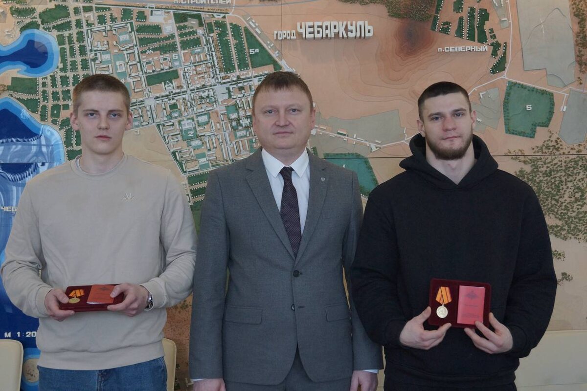 https://max.ru/join/5Puxq1N1DlFUCgv8zu_3aDxJeZGhHjeN1PJvu8hcDHg Награды получили Максим Мануйлов из Чебаркуля и Дмитрий Хлебников из Миасса. В 2025 году они оба проходили срочную службу в Кремлевском дворце и были членами расчета, участвовавшего в торжественном параде в честь 80-летия Победы. Во время встречи с Михаилом Панариным молодые люди рассказали о собственных впечатлениях от участия в событии такого масштаба, а еще поделились своими планами на будущее. — Я впечатлен их целеустремленностью и желанием внести свой вклад в развитие нашей страны. Уверен, что эти молодые люди добьются больших успехов и станут гордостью нашего региона! — отметил глава Чебаркуля. Ран