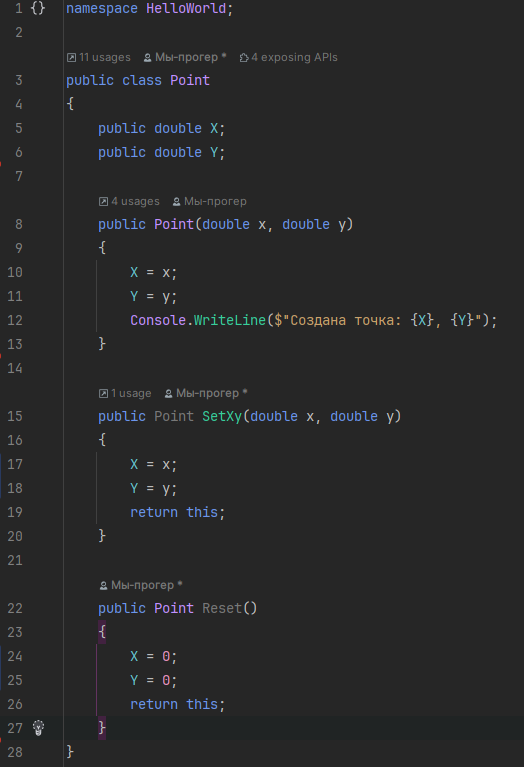Пусть у нас есть класс Point ("Точка") (оставшийся от предыдущей статьи или новый):
