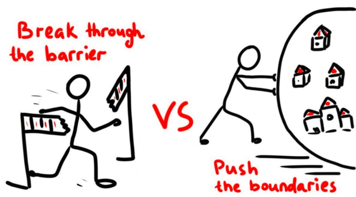 Для начала, челлендж для advanced learners - Проверь себя: Complete the sentence: Hired by Nintendo to reinvent an arcade game, Shigeru Miyamoto broke through the _____ which had previously pitched these games only at adults. A. fence B. barrier C. wall D. boundary You don't think that angry dog barking at us could break through the fence, do you? Поскольку в нашем предложении никаких реальных заборов не наблюдается, fence нам не подходит. push (back), cross or overstep the boundaries Меня по-честному умиляет (в хорошем смысле) такая 'гуманность' на уровне языка. Согласитесь, это немного нежнее звучит, чем прорываться через границы) Тут уже стоит посмотреть на контекст и подумать о том, чем отличается барьер от стены. • Стена - это, как правило, довольно солидная конструкция. Это учитывается и в английском, поэтому мы 'break through the wall', когда препятствие кажется нам практически непреодолимым, разве что мы предпримем нечеловеческие усилия и как-то сможем в корне изменить ситуац