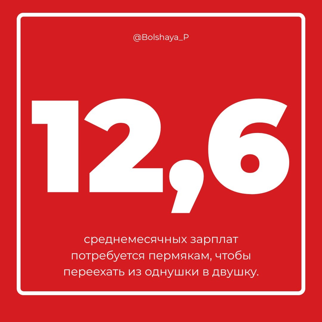 ». Нейросеть «Алиса AI» рассчитала для регионов России так называемый индекс расширения жилья. Простыми словами — сколько зарплат нужно откладывать, чтобы доплатить за лишние квадратные метры. Для Пермского края — 12,6 среднемесячных зарплат. Это примерно один год и один месяц работы, если откладывать целиком весь доход. В среднем по регионам-миллионникам доплата за расширение равна 14,7 зарплаты, то есть около года и трех месяцев. Быстрее всех расширяются жители Свердловской области: там хватит 7,7 зарплаты (8 месяцев), в Башкортостане — 8,8 зарплаты (9 месяцев), в Челябинской области — 9,7 зарплаты (10 месяцев). А сложнее всего переехать из однушки в двушку в Москве — потребуется 51 зарплата, или больше четырех лет. ❤️ Подписаться | Предложить новость | Дать «буст» | Мы в MAX