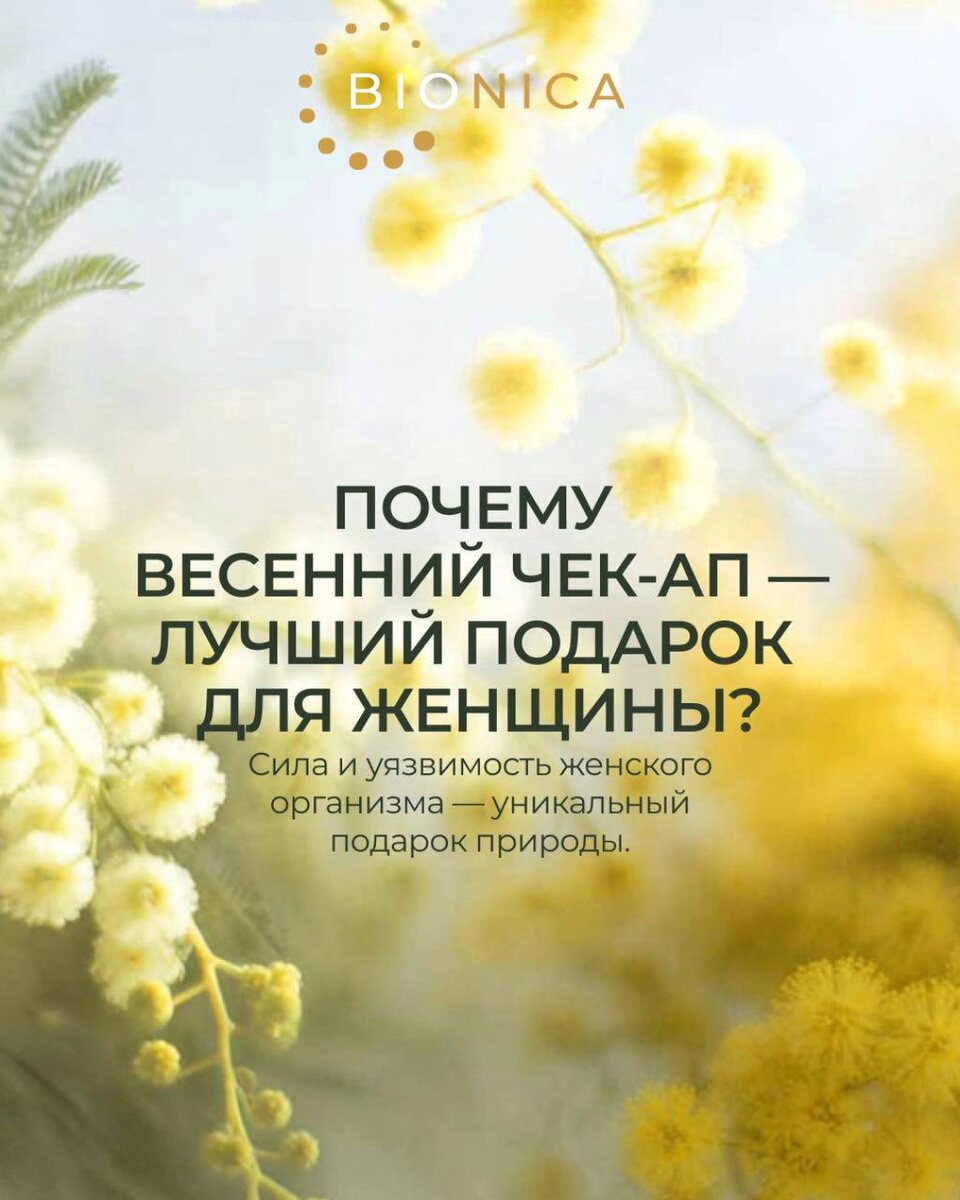 Женщины - удивительный пример биологической устойчивости. Мы переживаем ежемесячные гормональные бури, вынашиваем новую жизнь, быстрее восстанавливаемся после болезней и в среднем живём дольше мужчин. Но у этой выносливости есть цена. Женская физиология несёт в себе особые риски, которые часто остаются незамеченными - до тех пор, пока не проявятся симптомами. Листайте карточки! ➡️Как весенний чек-ап помогает увидеть «невидимые» проблемы? • Ферритин - выявляет дефицит железа даже при нормальном гемоглобине (он есть почти у 30% женщин). • Гормональная панель - при регулярном контроле помогает заранее заметить изменения и мягко подготовиться к периоду менопаузы. • УЗИ печени и желчного пузыря - позволяет обнаружить сгущение желчи и холестерин до формирования камней. «Молчащие» камни есть у каждой 5-й женщины уже после 35 лет. • Общий анализ крови - простой, но ценный инструмент для выявления скрытого воспаления (СОЭ, соотношение лейкоцитов). • Копрограмма - отражает качество перевар