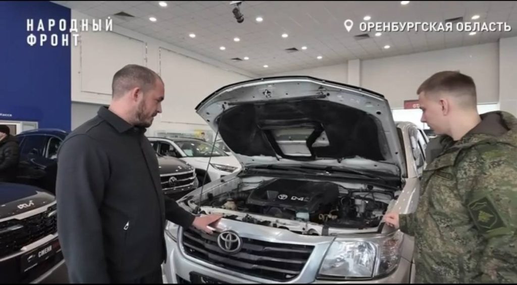 Очередная партия автомобильной помощи ушла из Оренбурга в зону специальной военной операции. Технику передали предприниматели, крупные предприятия и активисты Народного фронта. Toyota Hilux уехала на донецкое направление. Ее приобрел владелец автосалона Михаил Аристов. У него на фронте брат, и до этого он уже отправлял два автомобиля ВАЗ. КАМАЗ от «Газпром добыча Оренбург» передан бойцу с позывным «Авангард» на запорожское направление. Это уже четвертый грузовик от предприятия в этом году. ВАЗ ушел на Курск. Боец «Октябрь» встретил машину лично: «Будет возить продовольствие и людей. Таких авто не хватает». Фото: скриншот видео t.me/onf_orenburg 16+