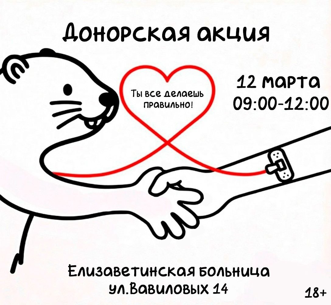 🩸 12 марта — донорская акция «Ты все делаешь правильно» в СПбГЛТУ
