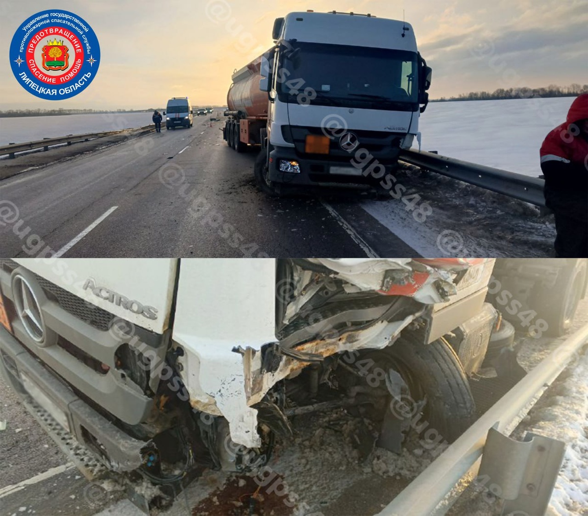 Рано утром на 317-м километре трассы Орёл–Тамбов столкнулись легковой Great Wall и грузовой Mercedes