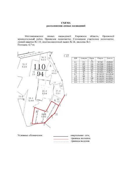 Название: Местоположение лесных насаждений: Кировская область, Орловский муниципальный район, Орловское лесничество, Соловецкое участковое