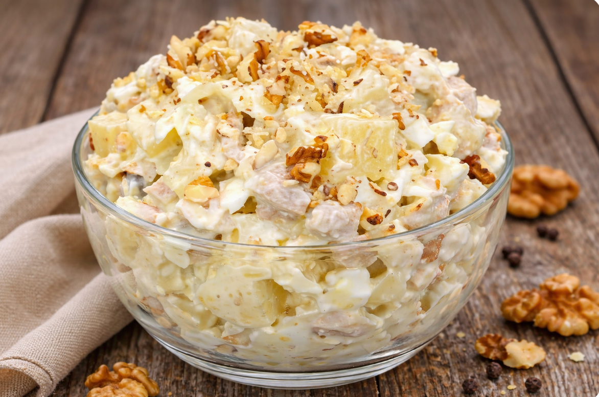 Иногда самые вкусные рецепты приходят к нам совершенно случайно. Так произошло и со мной. Казалось бы, за жизнь перепробовала сотни салатов: классические, праздничные, быстрые на каждый день. Но именно в 50 лет я впервые попробовала салат с красивым названием «День и ночь», и он буквально покорил меня с первой ложки. Я попробовала его в гостях у подруги. Сначала даже не обратила на него особого внимания — обычный салат с курицей. Но стоило попробовать, как сразу стало понятно: вкус совершенно особенный. Нежная курица, сладкие ананасы, мягкие яйца и хрустящие орехи создают удивительное сочетание. А майонез объединяет все ингредиенты в гармоничный, насыщенный вкус. Подруга призналась, что этот салат подают во многих ресторанах, просто иногда под другими названиями. Секрет — в идеальном балансе сладкого, солёного и нежного вкуса. Теперь я готовлю его на каждый праздник, и он всегда исчезает со стола первым. Название появилось из-за контраста ингредиентов. Светлые слои курицы и яиц нап