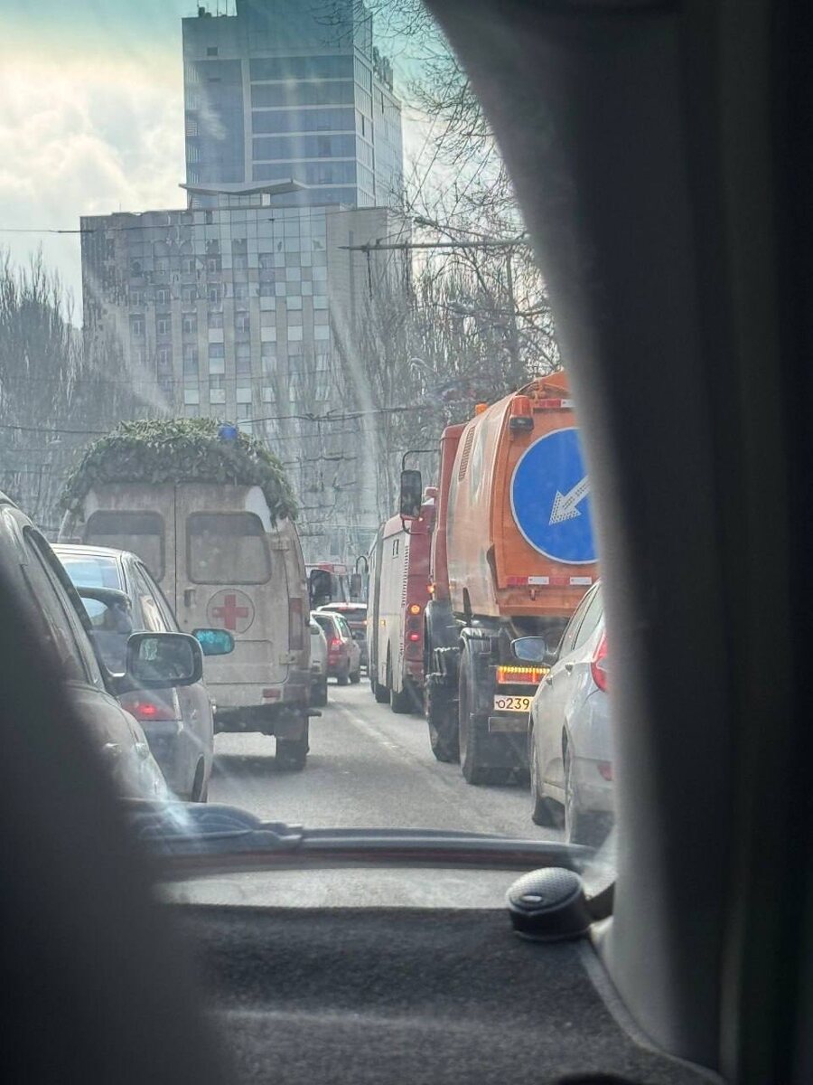 Пробка на пересечении пр. Мира и ул. Артёма в Донецке из-за сломанного троллейбуса