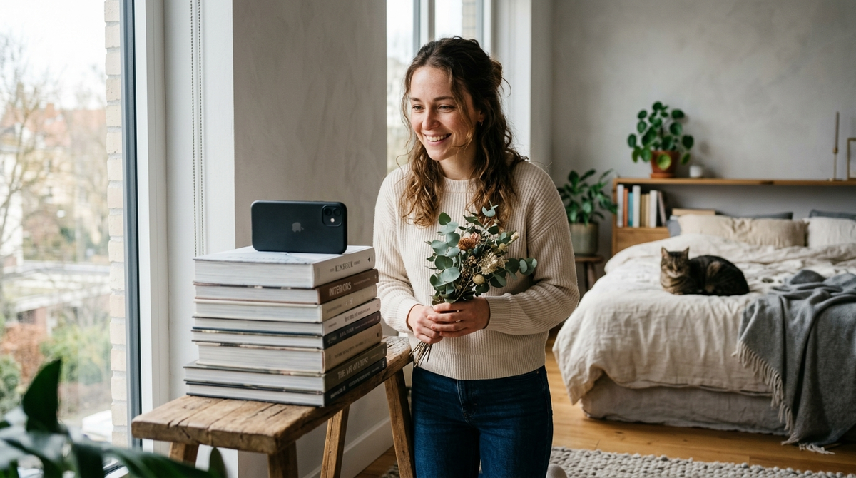 Штатив или подручные средства. Если у вас нет штатива - не беда. Стопка книг, устойчивая коробка, гладильная доска - всё пойдёт в дело. Поставьте телефон, включите таймер на 10 секунд и бегите в кадр. Да, будет весело. Но результат того стоит.