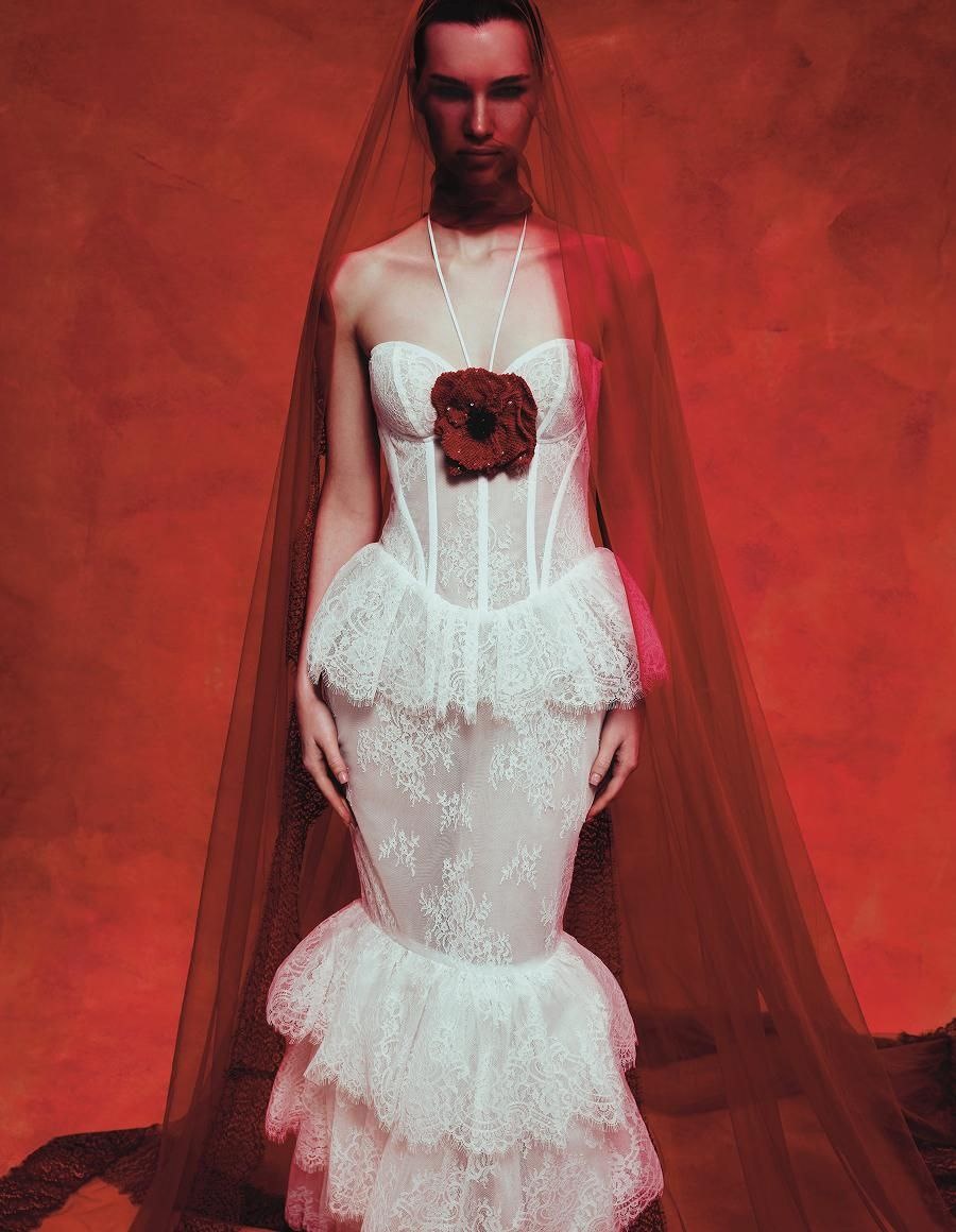 Очень нравятся отсылки к эстетике «Царевны-лебеди» Михаила Александровича Врубеля. Фотографировал Максим Тараканов. Это вау!❤️ А если вы сейчас ищете свадебное платье, то 26 локальных дизайнеров и брендов мы собрали▶️ в этой подборке.