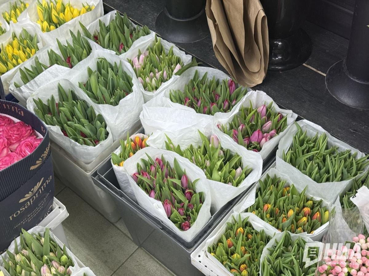 До Международного женского дня остаются считаные дни, потому цветочные магазины в Нижнем Новгороде работают в усиленном режиме. По традиции именно букет становится главным подарком для мам, жен, сестер и дочерей. Корреспондент НИА "Нижний Новгород" выяснила, в какую сумму обойдется праздничный букет и какие цветы, помимо тюльпанов, выбирают покупатели. Оказалось, главный символ 8 Марта ощутимо прибавил в цене. Если год назад в сетевых магазинах тюльпаны начинались от 100 рублей за штуку, то сейчас найти вариант дешевле 130 рублей практически невозможно. Чуть выгоднее брать готовые композиции. Например, три тюльпана в слюде с атласной лентой стоят 399 рублей, пять — 649 рублей и выше. Оттенков по‑прежнему много, но чаще всего на прилавках встречаются желтые и розовые цветы. Неожиданно более доступные цены обнаружились в гипермаркетах. Там букет из пяти тюльпанов предлагают за 350 рублей. Правда, выбор скромнее, да и простоять в вазе они могут меньше. Еще один символ весны — мимоза — в э