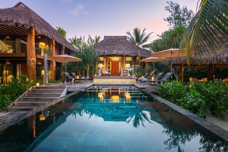 Уединённые виллы с частными бассейнами на белых песчаных пляжах. Каждая вилла располагает жилым помещением, крытой и открытой столовой зонами, ванной на открытом воздухе, душевой и гардеробной зоной, частным садом, частным бассейном и пляжем.
