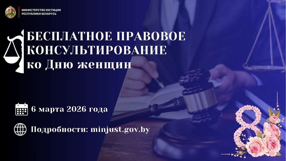 с 10.00 до 12.00 Министерство юстиции проведет в формате прямой телефонной линии акцию по бесплатному консультированию граждан, приуроченную ко Дню женщин. ⚡️В ходе консультирования граждане смогут получить ответы на интересующие их вопросы, не требующие ознакомления с документами, в сферах: ◾️нотариальной деятельности – тел. 8 (017) 200 89 71; ◾️легализации (апостилирования) официальных документов, составленных на территории Республики Беларусь – тел. 8 (017) 211 01 93; ◾️принудительного исполнения исполнительных документов – тел. 8 (017) 200 06 17. ❕Также участие в акции примут специалисты главных управлений юстиции облисполкомов и Мингорисполкома, адвокаты и нотариусы. 🌱Подробности на нашем сайте minjust.gov.by 💪💪💪💪| Сайт | Telegram | Instagram | YouTube