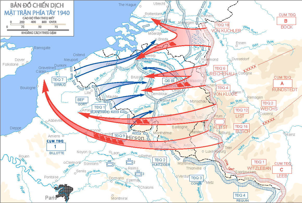 Тем временем на севере действовала группа армий «Б» генерала Фёдора фон Бока. Именно её наступление в Бельгии и Нидерландах должно было сыграть роль приманки. В её распоряжении находились десятки пехотных дивизий и несколько танковых соединений — всего более восьмисот танков. Их задача состояла в том, чтобы втянуть французские и британские войска в масштабные бои на бельгийской равнине.