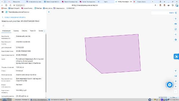 Название: Земельный участок, площадью 1252 кв.м., кадастровый номер 35:25:0704026:1543, расположенный по адресу: Вологодская область