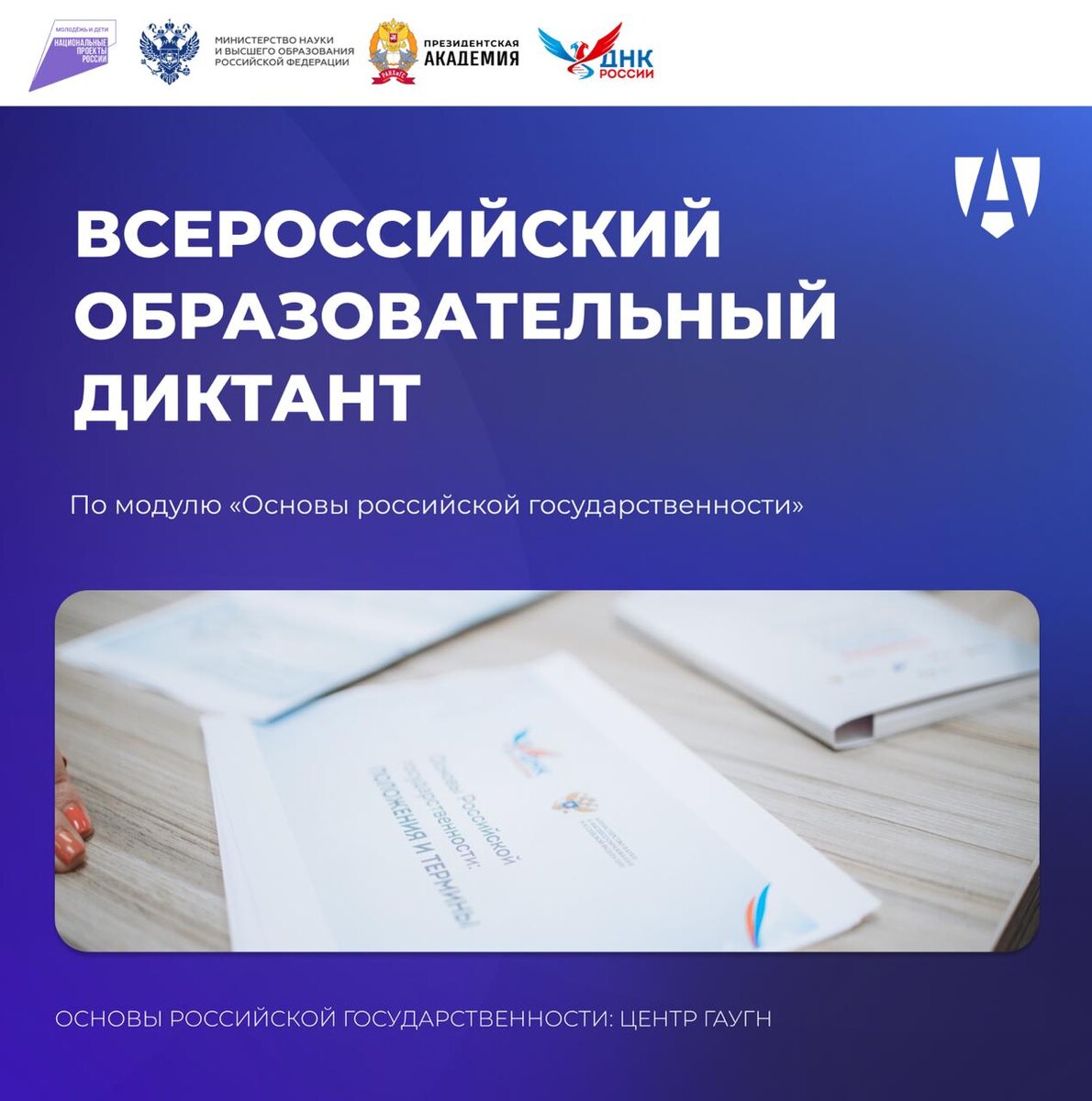 🗣 С 23 по 27 марта состоится Всероссийский образовательный диктант по модулю «Основы российской государственности». Диктант пройдет в формате онлайн-тестирования с целью проверки знаний о ценностно-смысловых основах российской цивилизации, героическом прошлом и культурных традициях народов нашей страны, а также умений критического анализа и навыков ответственного гражданского мышления. Мероприятие пройдет на платформе Президентской академии в рамках национального проекта «Молодежь и дети». 🗣 К испытанию приглашаются студенты высших учебных заведений Российской Федерации всех форм обучения и направлений подготовки, уже освоившие модуль «Основы российской государственности. 📆 Даты: 23-27 марта. ✅ Формат: Онлайн -тестирование Чтобы принять участие, необходимо пройти регистрацию до 18 марта. 🔗 Узнать подробности и пройти регистрацию можно по ссылке. #простРАНство_ГАУГН #ГАУГН #gaugn_event #ОРГ 👻 МАХ 📲 ВК 📺 RT 📝 ДЗЕН