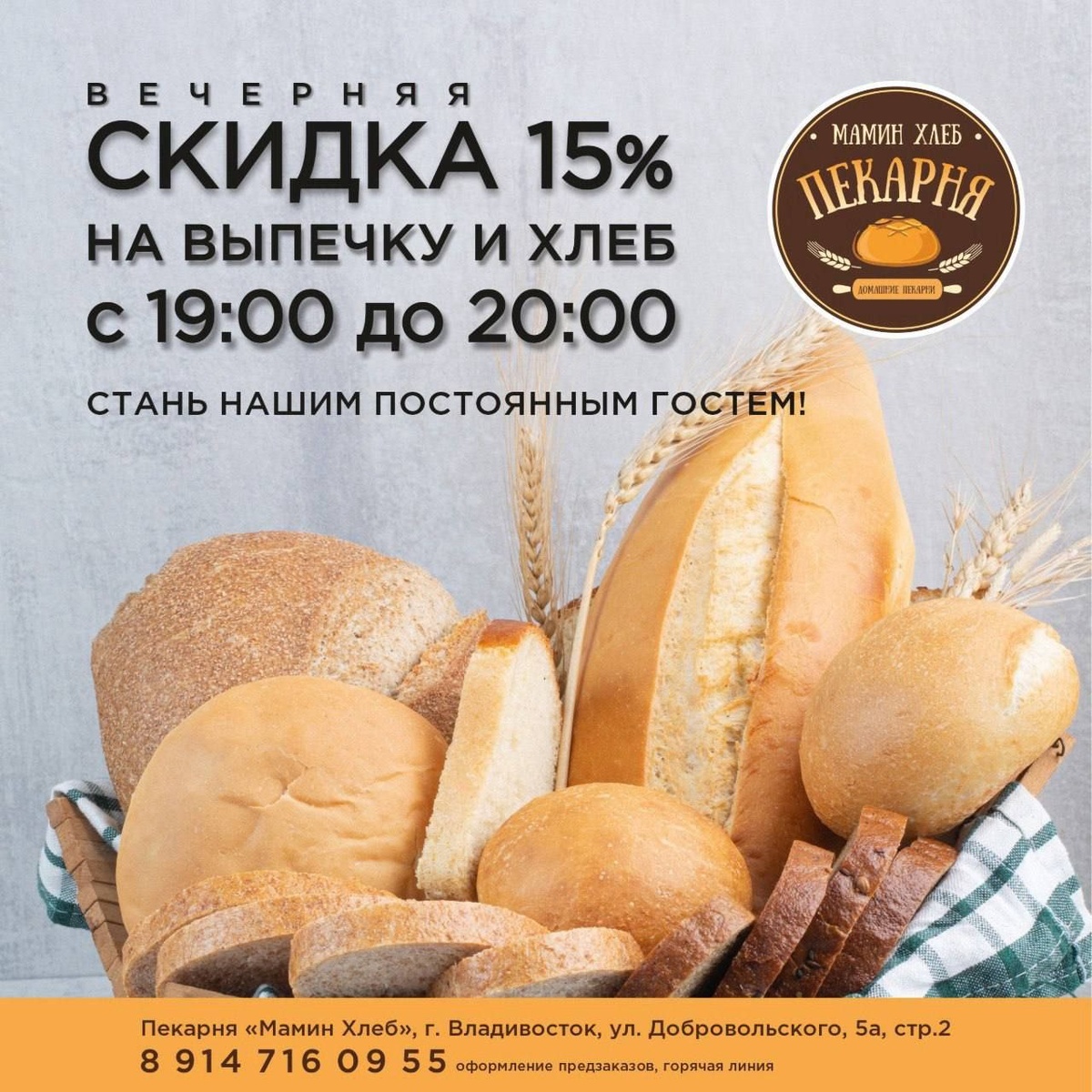 ! 🏡❤️ Друзья, нам есть чем гордиться! С большой радостью хотим напомнить, что уже 5 лет наша пекарня-кондитерская «Мамин Хлеб» радует вас теплом, уютом и ароматом только что испеченного хлеба 😊 За эти годы мы точно поняли одно: настоящий домашний хлеб — это не просто еда. Это хрустящая корочка, которая переносит нас в детство, и тот самый вкус уюта, который хочется дарить каждый день. Мы как раньше, так и сейчас печём всё сами, без полуфабрикатов и «химии»: — Хлеб по бабушкиным рецептам 🍞 — Круассаны со сливочным маслом — Пироги с разными начинками — Десерты из свежих ягод Куда можно заглянуть к нам: — Начать утро с хрустящего круассана и чашечки кофе ☀️ — Взять выпечку и пирог к вечернему чаю домой — Заказать авторские десерты на семейный праздник — Просто зайти на запах свежей выпечки, чтобы поднять себе настроение — мы всегда ждём! 🕒 Мы работаем для вас каждый день: с 9:00 до 20:00 🎁 А ещё мы помним о наших любимых бонусах: — Пенсионерам — скидка 10% — В последний час ра