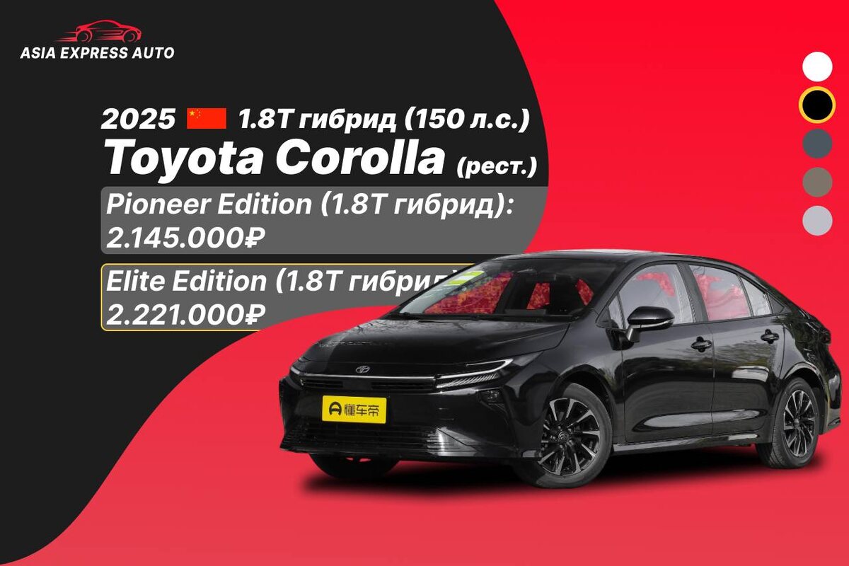 !🆕 🔖Стоимость автомобиля рассчитана по курсу на сегодняшнее число до нашей стоянки в г. Благовещенск или Владивосток, с полным пакетом документов для постановки на учет! 🔖 Отправка в любой город! TOYOTA COROLLA рестайлинг новый!🇨🇳 ▫️Год: 2025 ▫️Двигатель: 1.8 гибрид (150 л.с.) ▫️Привод: 2WD ▫️Новый автомобиль!💎 💰Стоимость под ключ в РФ: 🔹Pioner Edition (Нажмите на ссылку, чтобы увидеть комплектацию полностью): 2.145.000₽ 🔹Elite Edition (Нажмите на ссылку, чтобы увидеть комплектацию полностью): 2.221.000₽ 💸По курсу юаня 11.76 Стоимость может измениться из-за цвета! Если вас интересуют другие автомобили, напишите в комментариях — наши менеджеры с удовольствием рассчитают цену под ключ в РФ. ✍️ 🔴Смотреть адреса офисов 🔴Данил Е Благовещенск #Китай #Новый