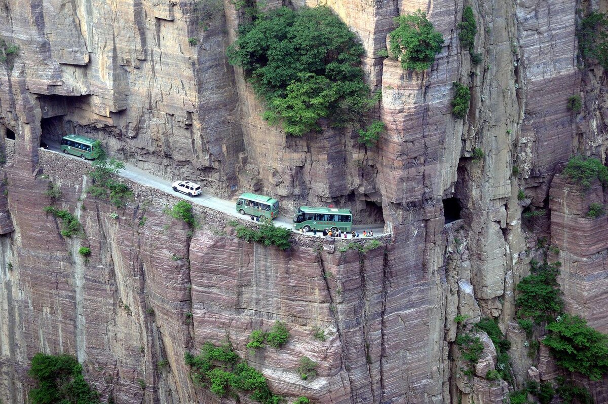 Длина туннеля Гуолян (Guoliang Tunnel), прорубленного в скале горного массива Тайхан, менее полутора километров, однако это не помешало ему стать одной из ключевых дорожных достопримечательностей Китая. В туннеле предусмотрены прорези — «окна», через которые открываются захватывающие панорамы. Сооружение появилось в 1970-х годах, чтобы жители деревни Гуолян, находившейся в удалённой долине, получили выход в внешний мир, минуя опасный горный троп. Основную часть работ.execute 13 местных жителей, которые в течение пяти лет вручную расширяли проход. В итоге туннель, достаточно широкий для проезда автобуса, стал популярным туристическим объектом и дал деревне долгожданную связь с цивилизацией.