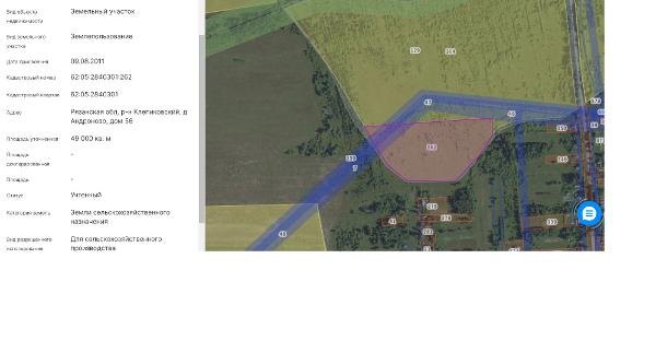 Название: Земельный участок с кадастровым номером 62:05:2840301:262, категория земель – земли сельскохозяйственного назначения, вид