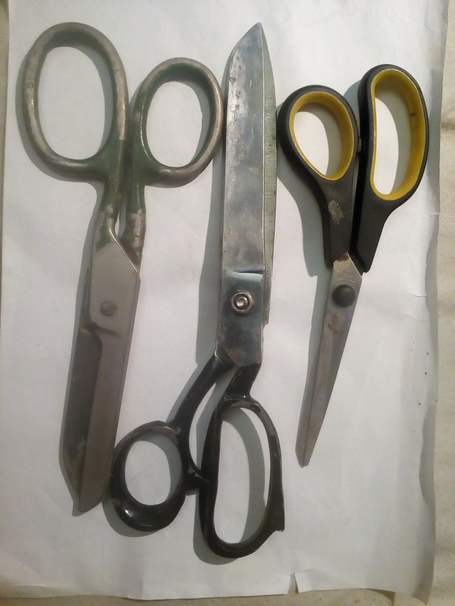 Обычно у меня так: покупаю только то, что не дорого. Но вот эти ножницы, что на фото посередине - купил задорого. 900 рублей: болт с шайбой и гайкой + два конца с кольцами... 5 деталей. Толщина обуха у каждого клинка - 6 мм. Пакистан, якобы... Холодное оружие ... Можно использовать как кастет, можно как лом... :0))) Наши, советские: Кухонные и парикхмахерские? Винтаж: Золинген... з-й рейх? Современные фирменные: Начало ХХ века, пожалуй: Дизайн - я тащусь... :0) Для сравнения золингенские И маникюрные: Канцелярские: Длинные, ага. Ну и в этой статье, парочка: