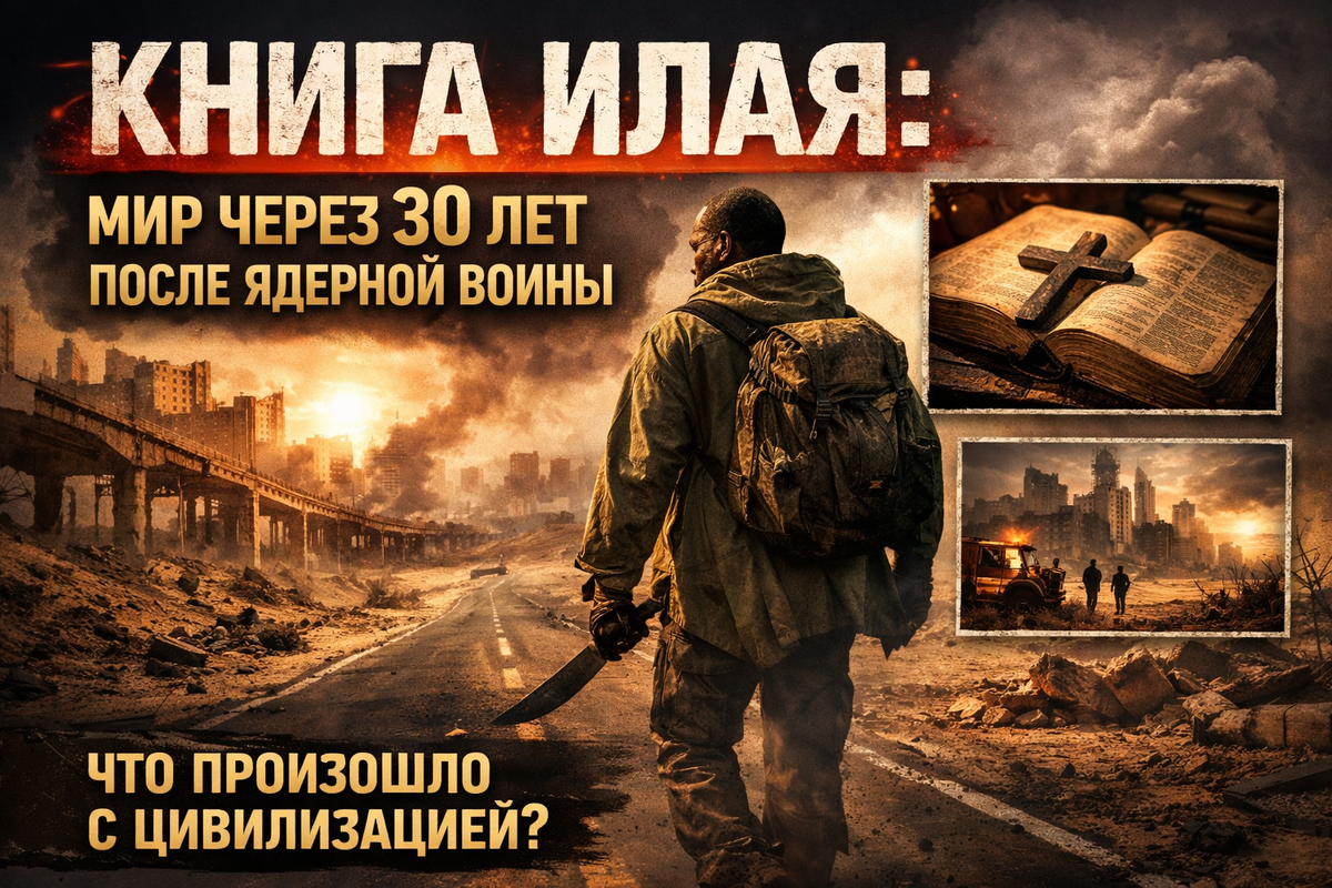 Фильм The Book of Eli — один из самых странных и философских постапокалиптических фильмов XXI века. На поверхности это простая история: одинокий путник идет через разрушенную Америку, неся книгу, которую должен сохранить. Но если смотреть внимательно, фильм говорит не о выживании. Он говорит о конце цивилизации после ядерной войны и о том, что остается, когда исчезают знания. События происходят примерно через тридцать лет после ядерной войны. Мир фильма выглядит почти безжизненным: Причина — последствия ядерного обмена ударами. После массовых взрывов происходит несколько процессов: Именно поэтому мир фильма больше похож на пыльную пустыню, чем на привычную Америку. Главный антагонист фильма — Карнеги. Его цель — найти Библию, которую несёт Илай. Но дело не в религии. Карнеги понимает простую вещь: книга может управлять людьми. После катастрофы большинство книг было уничтожено.