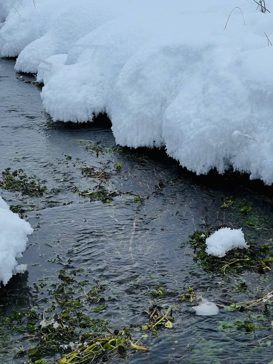 ! Курайская степь, Алтай: на улице −20 °C, а у воды — сочная яркая зелень 🌿 В чем секрет? В горной реке Тюте растет вероника поточная — холодолюбивое растение. Весной она выходит на берега и зацветает крошечными голубыми цветками, а зимой прекрасно чувствует себя в ледяной воде ☃️