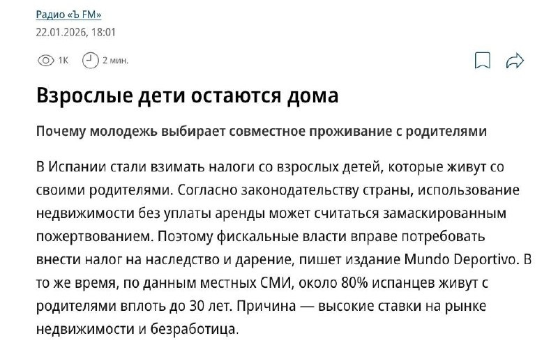 Живёте у родителей бесплатно? Если бы это происходило в Испании, вполне возможно, вы бы уже столкнулись с вопросами от налоговой