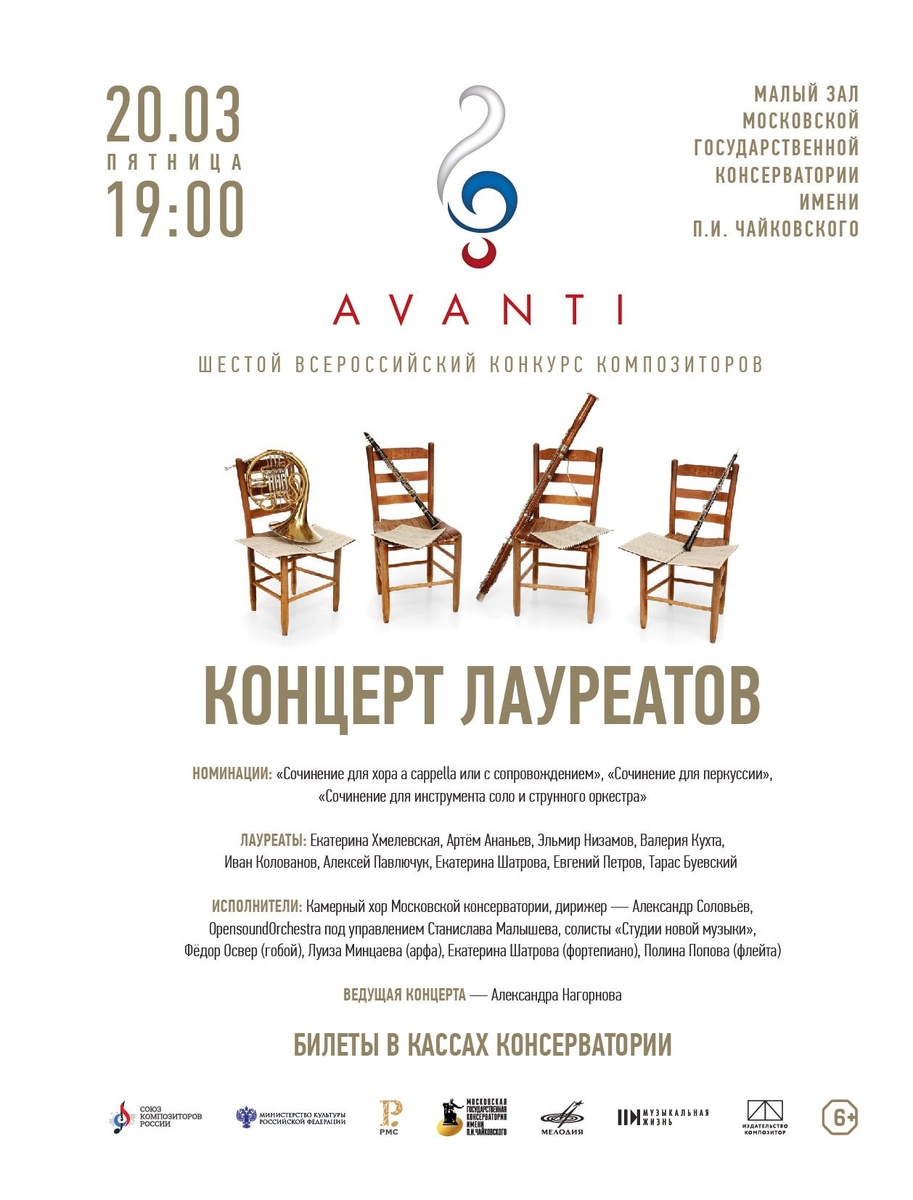 20 марта 2026 года в 19:00 в Малом зале Московской консерватории состоится заключительный концерт VI Всероссийского композиторского конкурса AVANTI. https://www.classicalmusicnews.ru/anons/konczert-laureatov-kompozitorskogo-konkursa-projdet-v-moskve/?utm_source=cmn_own&utm_medium=telegram 🎼 ClassicalMusicNews.Ru | Telegram | ВК | МАКС