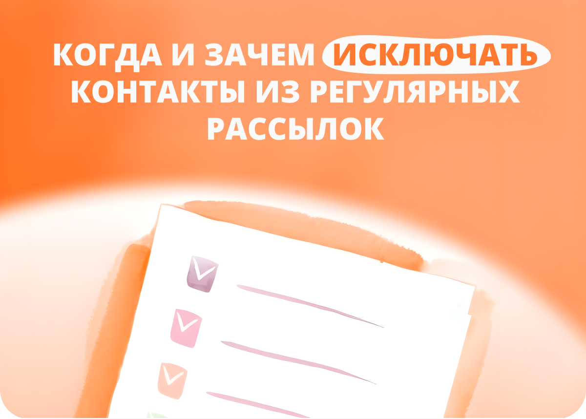 Автосалон запустил рассылку с акцией на популярную модель машины и быстро узнал, где ошибся, когда... Когда к ним пришла разгневанная клиентка, которая неделю назад приобрела этот же автомобиль. Узнав о скидке, она потребовала вернуть ей разницу с угрозой аннулировать сделку. Ошибка стала очевидной: запуская рассылку, команда салона не учла, на каком этапе находятся клиенты в воронке продаж. Чтобы вы не попали в такую же ситуацию, показали на примере разных ниш, когда и какие контакты разумно исключать из регулярных рассылок. В этом случае разумно разработать триггерные серии, соответствующие жизненному циклу клиента. На примере автосалона, это может выглядеть так: Зависит от вида бизнеса и от того, совершил ли клиент покупку. У интернет-магазина одежды этот срок может быть 2-5 дней, а у салона кухонной мебели — месяц для тех, кто не совершал покупок, и год для тех, кто уже сделал заказ. Для долгих продаж возвращать рекомендуем только после завершения сделки или через сегментированные