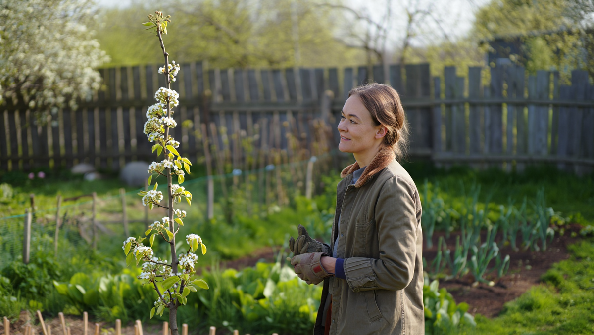 Соседка посадила грушу вдоль забора. Я смотрела через штакетник и не понимала — что она делает. Три деревца, одно за другим, почти вплотную к доскам. Тоненькие. Странные. Совсем не похожие на нормальную грушу.