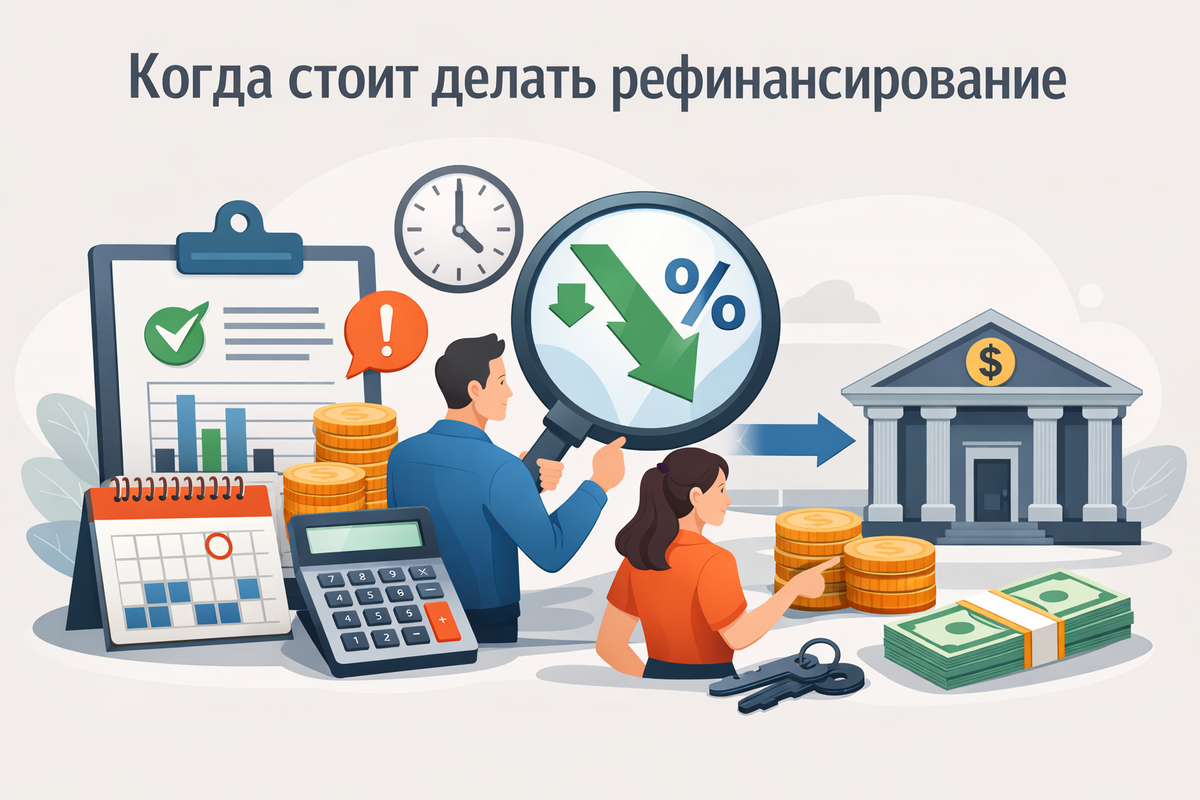 Рефинансирование — это оформление нового кредита для погашения одного или нескольких действующих займов на более выгодных условиях. Обычно цель такой процедуры — снизить процентную ставку, уменьшить ежемесячный платеж или объединить несколько кредитов в один. Многие заемщики начинают задумываться о рефинансировании только тогда, когда появляются финансовые трудности. Однако на практике это инструмент финансового управления, который позволяет оптимизировать долговую нагрузку и сократить переплату. Разберёмся, какие признаки говорят о том, что стоит срочно рассмотреть возможность рефинансирования. Один из самых очевидных сигналов — ежемесячный платеж начал занимать слишком большую часть дохода. Это может произойти по разным причинам: Финансовые эксперты часто рекомендуют, чтобы кредитные платежи не превышали 30–40 % от дохода. Если эта доля становится выше, нагрузка может стать слишком высокой. В таком случае рефинансирование может помочь: Даже небольшое снижение платежа может заметно об