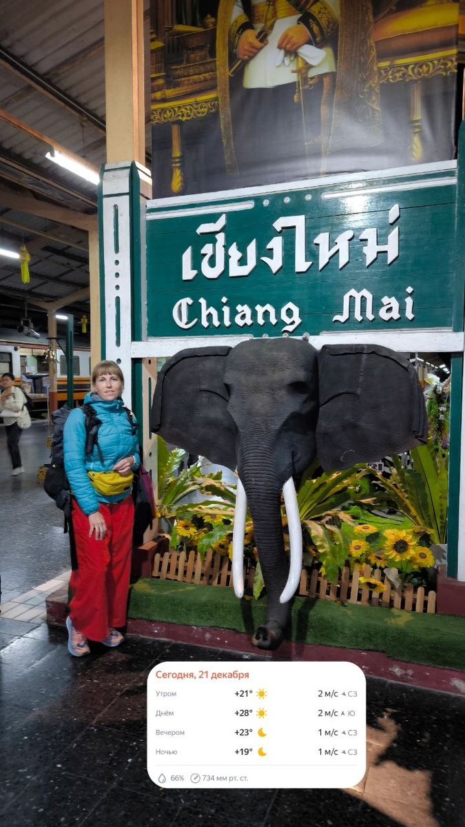 Путь на Чиангмай. Личный опыт. Мы отправляемся на Север Таиланда. Заметка Декабрь 2025 Вот такие замерзшие мы приехали с Аюттхайи в Чиангмай. Какой разный бывает Таиланд. Тёплые куртки с собой в поезд обязательно, и шапки тоже. Рассказываем, как мы проехали 800 км на поезде за 221 бат. Мечтали о настоящем Таиланде — не о пляжах Паттайи, а о горных пейзажах, древних храмах и рисовых полях? Тогда вам на Север, в Чиангмай. Это другой мир: прохладный климат, джунгли, уникальная культура и спокойствие, граничащее с Мьянмой и Лаосом. Наш путь начался не совсем гладко. Из Бангкока мы заехали на сутки в Аюттхаю, а оттуда решили добраться до Чиангмая поездом. На нужную дату остались только сидячие билеты третьего класса за 221 бат (около 400 рублей). Лежачих мест на 12 часов и 800 километров пути не нашлось — пришлось принять это как часть приключения. Стоит сказать, что поезда здесь бывают очень разными: от простых, как наш, до более скорых и современных, а места — от сидячих до плацкартных л