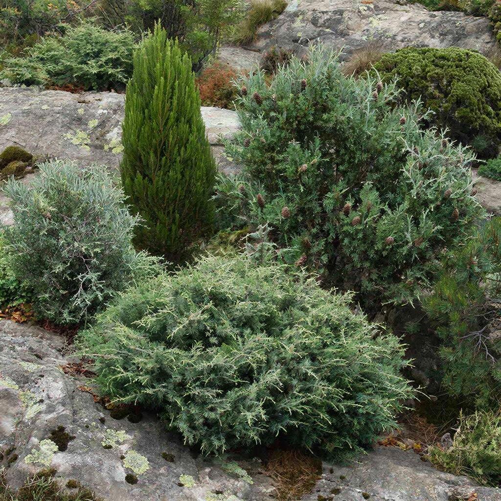 Можжевельники — это вечнозелёные деревья, кустарники или стланники с распластанными по земле стволиками. У молодых растений листья игловидные, а у взрослых могут быть разными — это позволяет выделить две группы: