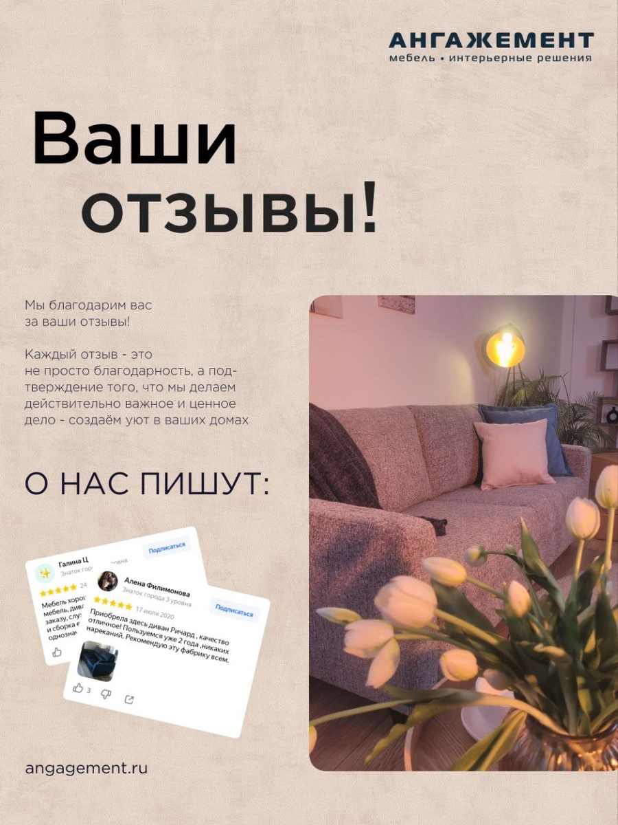 ! 🌟Сегодня хотим поделиться с вами отзывами на диван Ричард P.S. На него сейчас действует скидка 🤫 ➡️Подробнее 📍Адреса магазинов на сайте angagement.ru 📲 Консультация: 8(800)333-50-56 ✅ Подписывайтесь на наши каналы: https://clck.ru/3AGPWT #диваныкраснодар #мебельныйсалон #магазинмебели #диваны #ангажемент #мягкаямебель