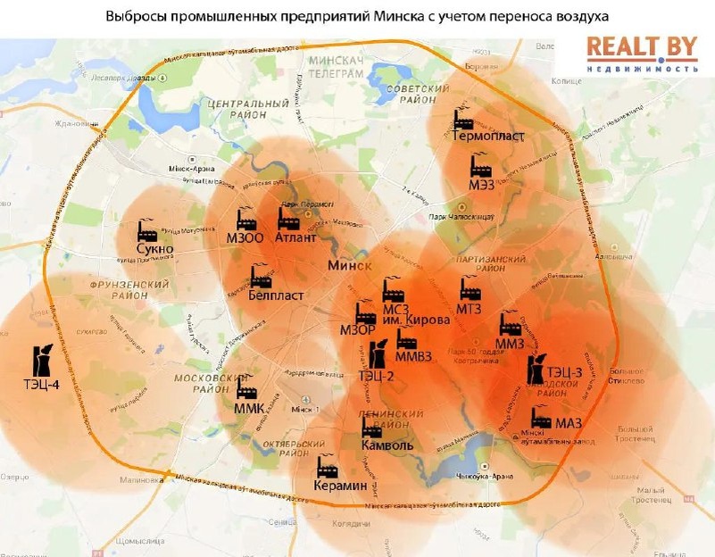 🌬️ Карта выбросов промышленных предприятий с учетом переноса воздушных масс
