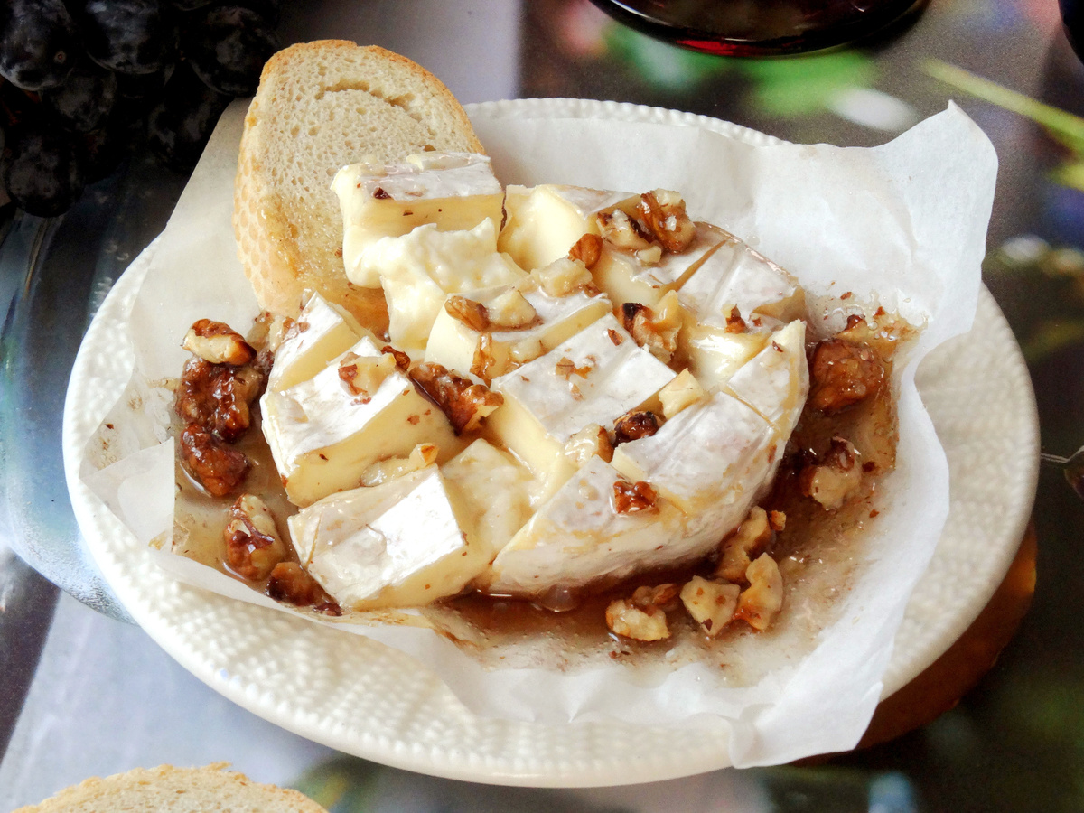 Сверху - румяная корочка, внутри - нежный тягучий сыр, который буквально растекается по кусочку багета. Готовится буквально за 10 минут и требует всего несколько ингредиентов, но на столе всегда производит впечатление. Полный список ингредиентов - в конце⤵️ Берем 100 г сыра камамбер. Кладем его на лист пергамента или в небольшую форму для запекания. Острым ножом делаем несколько неглубоких надрезов по всей поверхности сырной шайбы. Это нужно, чтобы мед лучше распределился и слегка пропитал верх сыра. Больше фото смотрите тут: Сверху выкладываем 1 столовую ложку меда. Мед постепенно будет стекать в надрезы и при нагревании станет более ароматным. Теперь добавляем 3 грецких ореха. Их лучше немного порубить ножом на крупные кусочки. Посыпаем орехами сверху. Разогреваем духовку до 180 градусов. Ставим сыр в духовку и запекаем примерно 10 минут. За это время сыр внутри станет мягким и тягучим. Снаружи останется тонкая корочка, а внутри будет густая кремовая масса. Достаем камамбер из духовк