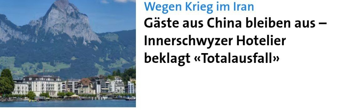 Владелец City Hotel в Бруннене, Сточан Стеванович, подтверждает: «Все гости из Китая с этого момента полностью отсутствуют», — и говорит о «полном срыве». Китайские туристы, по всей видимости, просто не могут попасть в Швейцарию: множество рейсов через Ближний Восток отменено, а возможный альтернативный маршрут через Сибирь невозможен из-за войны в Украине. Кроме того, глобальная нестабильность вообще отпугивает китайских туристов от путешествий. Стеванович управляет также Seehotel Helvetia в Зевене. «Сначала всё было забронировано до конца года», — жалуется он. Но вместо гостей из Китая он получает постоянные отмены. По словам Джакомо Гаравенты, председателя правления Schwyz Tourismus, ситуация в Центральном Швейцарии не является показательной для всего кантона: «Для туризма Швица потеря китайских гостей не так критична, поскольку около 70% гостей — это однодневные туристы и швейцарцы». Однако Стеванович много лет ориентируется именно на Китай и «специализируется на этой аудитории