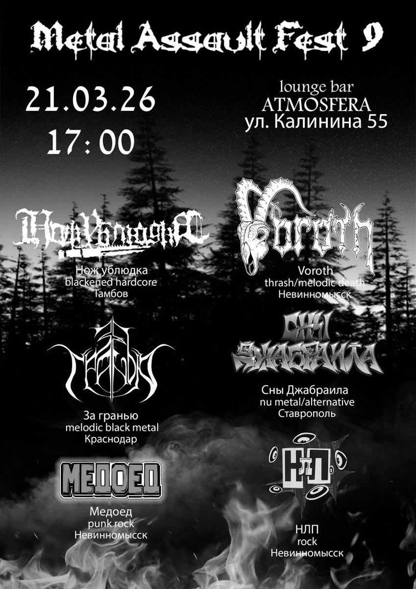 : • 13.03. Ставрополь - Dark March Evening в рок баре Наследие Билеты на входе • 14.03. Владикавказ - КУВАЛДА метал фест в Доме Кино Купить билет 👉🏻 +79280731900 или telegram @mike_dzioff • 20.03. Пятигорск - pre-party Metal Assault Fest в байкерском баре The Underground Билеты тут 👉🏻 https://voroth.timepad.ru/event/3793208/ • 21.03. Невинномысск - Metal Assault Fest 9 в лаунж баре АТМОСФЕРА Билеты тут 👉🏻 https://voroth.timepad.ru/event/3779052/ • 22.03. Нальчик - арт пространство Космодром Билеты на входе Вступайте во встречи, покупаете билеты заранее и обязательно приходите! Увидимся на концертах!