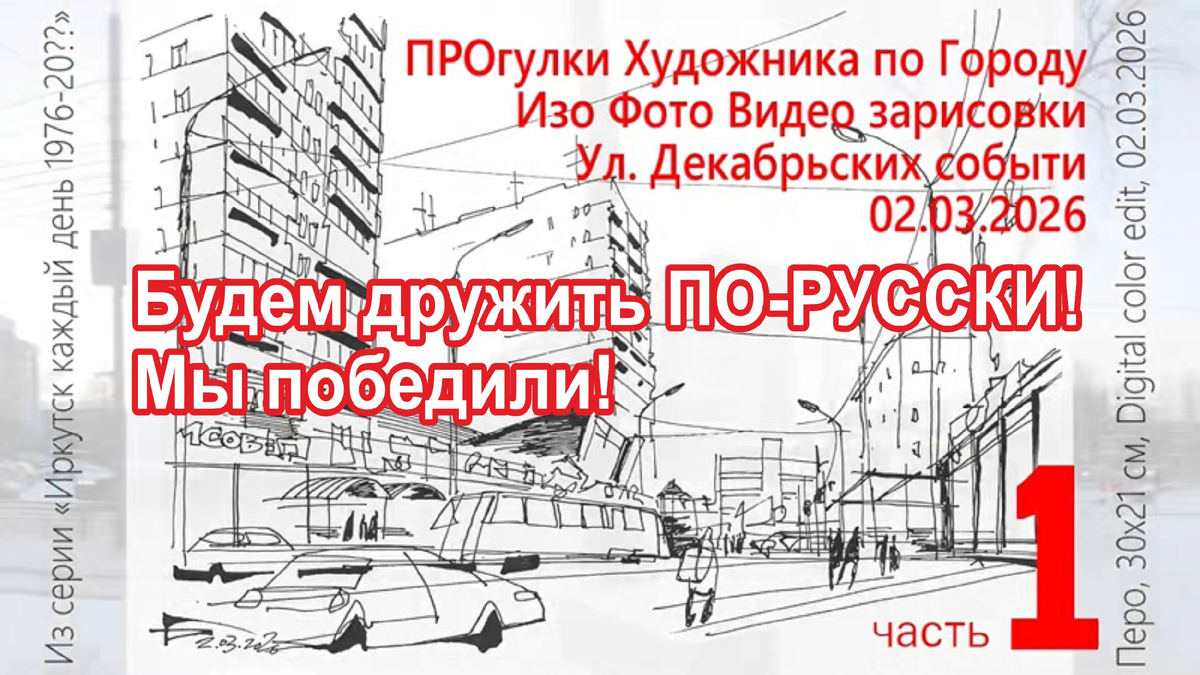 Будем надеяться, что придёт куда надо и не заплутает в офисах исполнительной власти. Чиновникам и генералам-правоохранителям сталось его исполнить, презрев извечный закон России "О повсеместной необязательности исполнения законов"*** Видео из серии "ПРОгулки Художника по Городу с мэром Иркутска Р.Н. Болотовым", часть 1, 26.02.2026 г.