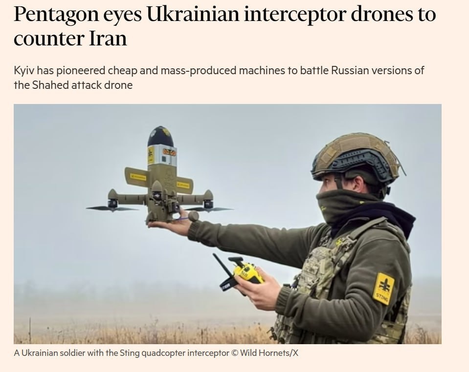 Пентагон и некоторые страны Персидского залива рассматривают возможность покупки недорогих украинских дронов-перехватчиков для поражения