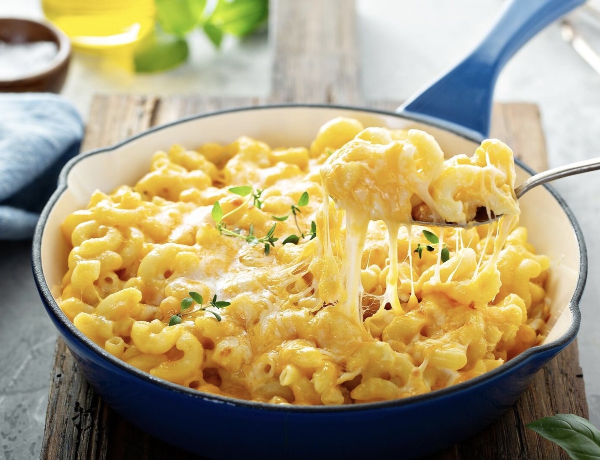 📷 Картинка: тарелка макарон с сыром и зеленью (аппетитный крупный план).