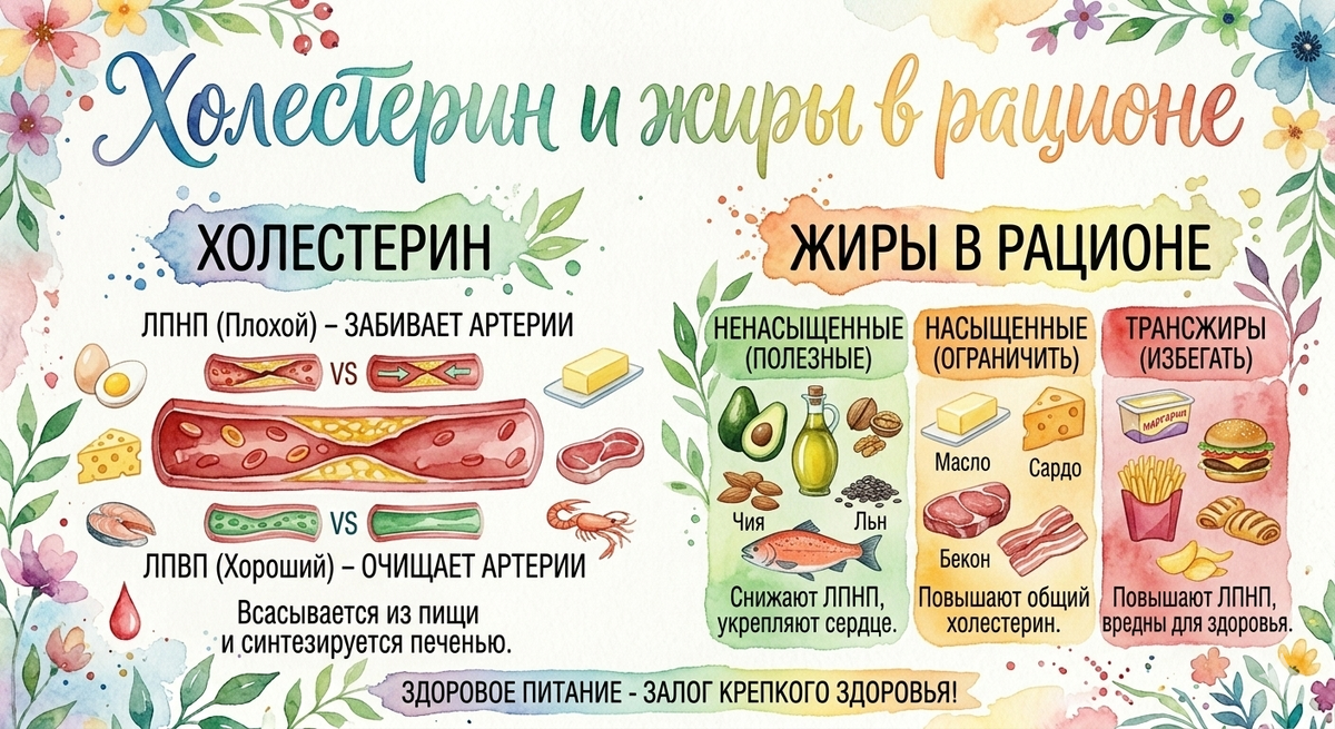 Самое большое заблуждение 20 века было то, что холестерин - зло и атеросклероз следствие его избытка. Это привело к поголовному отказу от природной пищи (в природе нет молока или творога 0% жирности) и замене обезжиренными, искусственными аналогами. Для сохранения и текстуры вкуса обезжиренных продуктов холестерин и др жиры заменяют крахмалом, мукой, сахаром – те простыми углеводами! И Именно употребление избытка простых углеводов привело просто к тотальным ранним инфарктам и атеросклерозу в Америке. А именно оттуда к нам приходит «мода» на правильное питание. В Америке этот миф про вред холестерина уже давно развеян и забыт.. а у нас упорно продолжают его поголовно исключать и попоказаниям и без. Какие жиры точно вредные – это транс-жиры, фаст-фуд и маргарин! Холестерин — это основной строительный элемент клеточных мембран у человек. Без него невозможно строительство новых клеток. Второе значение занимает ремонт повреждений сосудистой системы. Холестерин замазывает трещинки в кровено