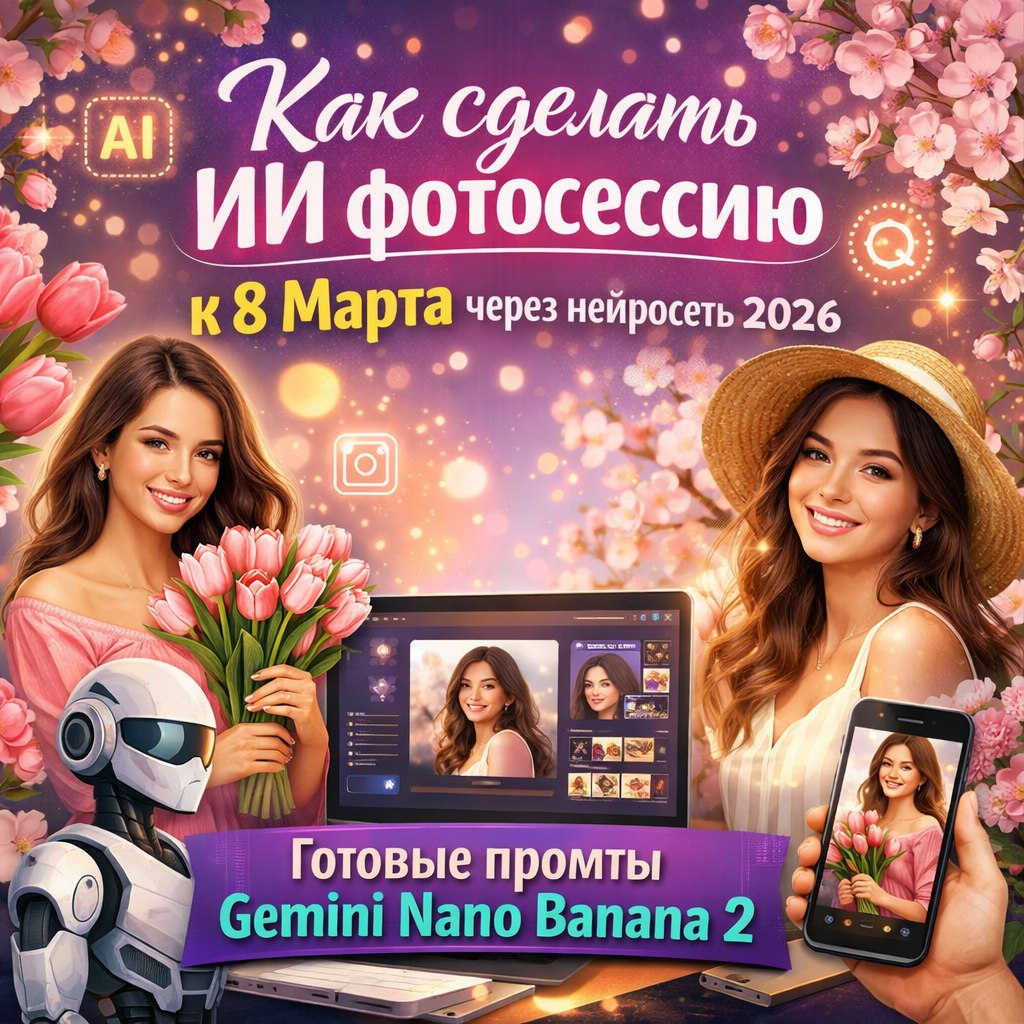 Как сделать ИИ фотосессию к 8 марта через нейросеть 2026: Готовые промты Gemini Nano Banana 2