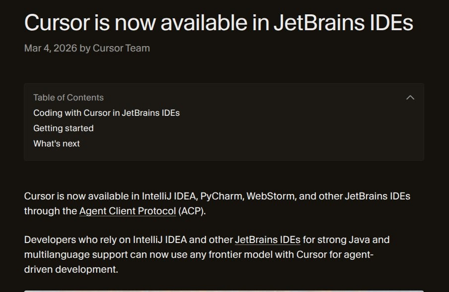 Кстати cursor добавили через Agent Client Protocol в JetBrains IDEs