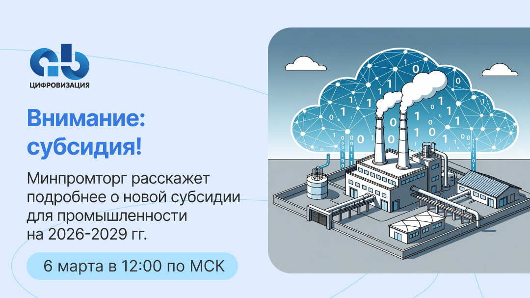 Субсидия для предприятий, производящих ГРАЖДАНСКУЮ продукцию от Минпромторга: ⦁ покрывает до 50% затрат на внедрение ПО и программно‑аппаратных комплексов; ⦁ максимум на один проект — 300 млн руб.; ⦁ срок реализации проекта — до 3 лет. 📒6 марта 2026 г. в 12:00 состоится онлайн‑презентация (видеоконференция). Подключиться можно по ссылке.