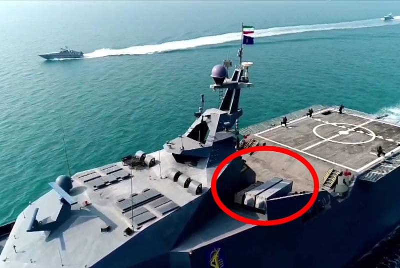 Момент удара по иранскому корвету Shahid Sayyad Shirazi. Попадание вызвало самопроизвольный старт противокорабельной ракеты ракеты Noor или Ghadir из расположенной пусковой установки. Как и в случае с потоплением иранского фрегата подлодкой ВМС США, по какой-то причине, Пентагон нарезал удар по этому иранскому корвету-катамарану на несколько публикаций, вместо того, чтобы показать все одним видео. Видимо, чем больше инфоповодов с победами, чем лучше. Военный Осведомитель