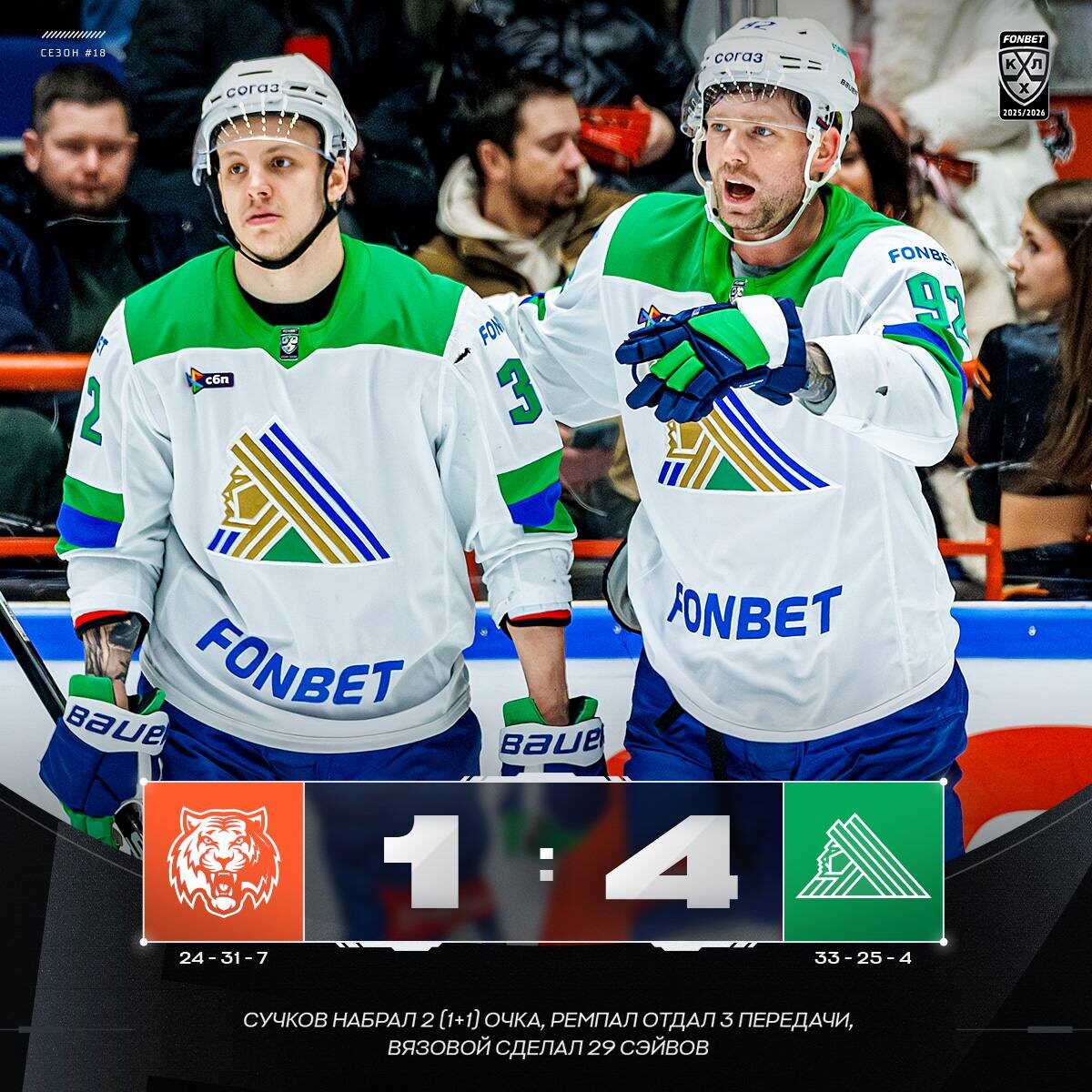 💚 Четвёртая победа «Салавата Юлаева» в последних пяти матчах!