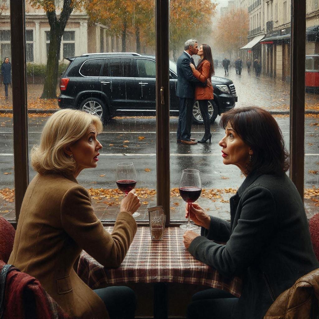 В кафе стало оглушительно тихо. Даша замерла с бокалом у губ. Её лицо из розового превратилось в серое, мертвенное. Вино в бокале дрожало. Она смотрела в окно, не моргая, словно боялась, что если закроет глаза, картинка исчезнет, а если оставит открытыми - сердце разорвется.